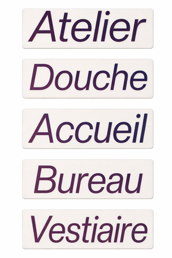 Optimisez l'accueil et l'orientation dans vos bureaux avec une signalétique 3D personnalisée. Des supports durables, parfaitement lisibles et conçus spécifiquement pour s'intégrer à votre architecture intérieure.